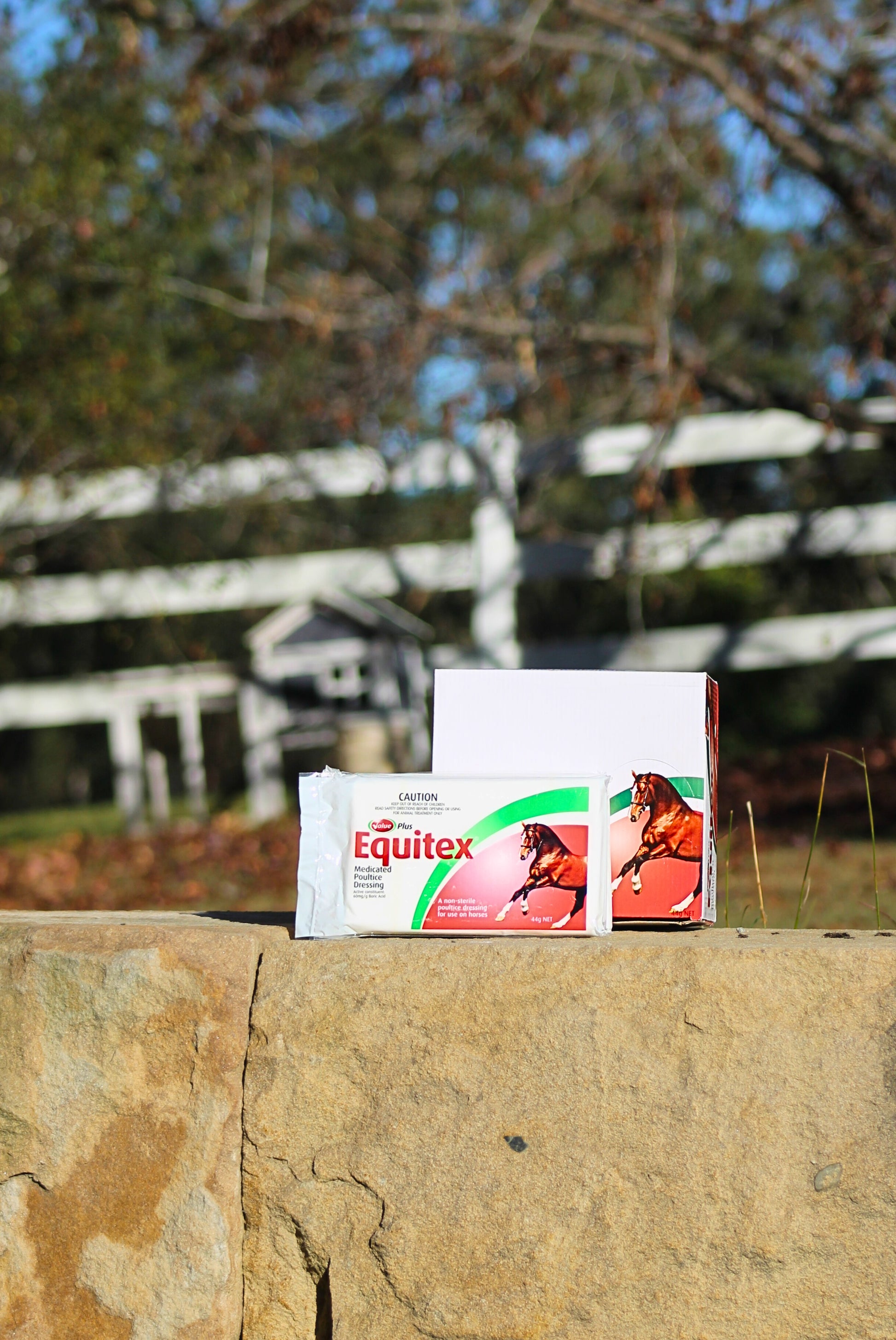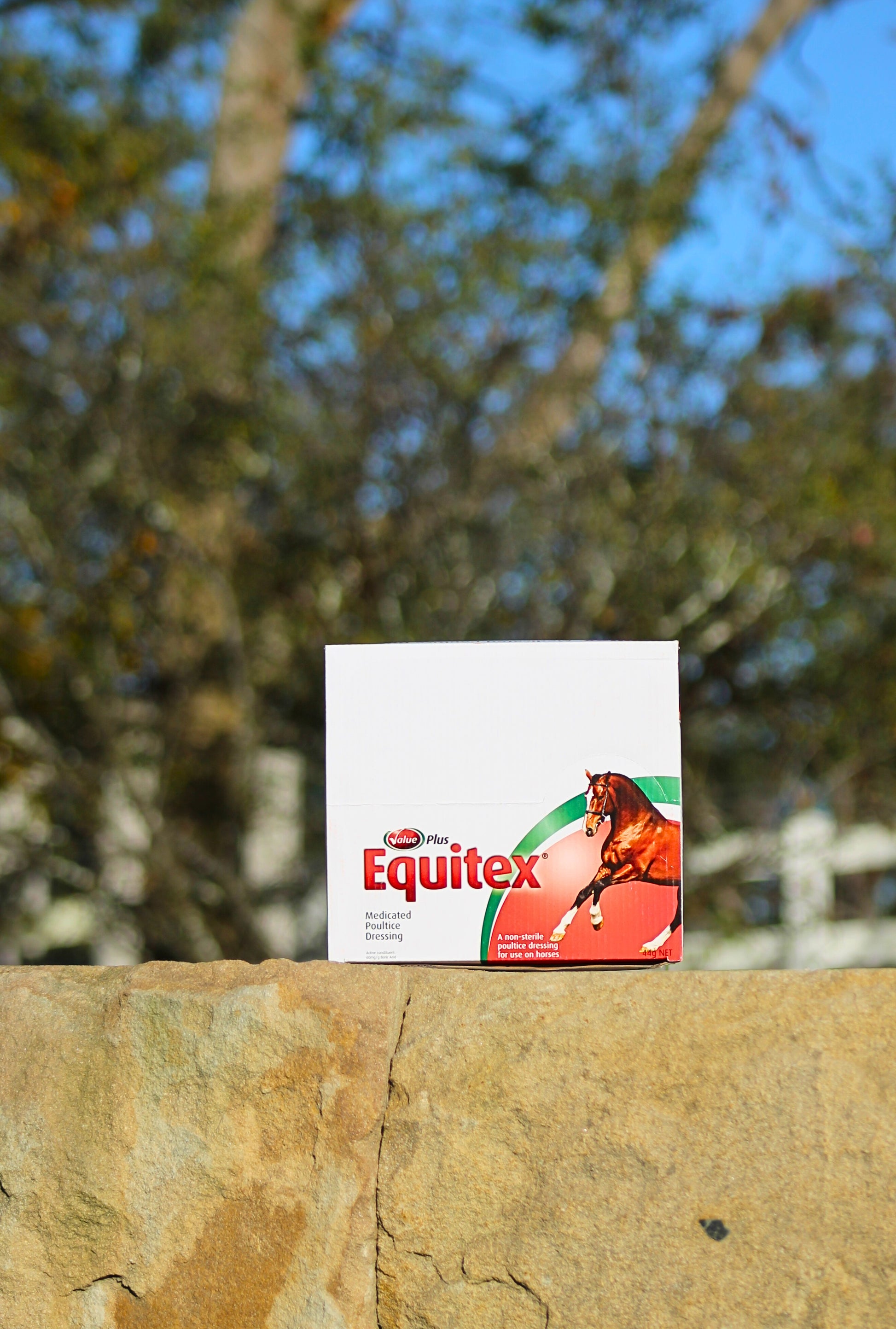 Hot poultice dressing. Cut Equitex to the size required and place in a shallow tray of boiled water which has been allowed to cool to 38°C. Once saturated, remove dressing from water and gently squeeze out excess water. Place dressing on the affected area with the plastic backing away from the skin. Hold in place with a stretch conforming, elastic adhesive or cohesive bandage. For open wounds, normal antiseptic precautions must be taken.